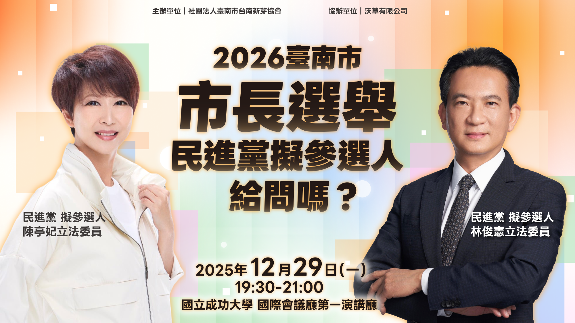 長期關注市政發展的「台南新芽」與多個在地公民團體共同發起本次活動。我們致力於建構一個公平、中立且透明的對話平台,邀請民進黨內兩位擬參選人針對關鍵治理議題進行說明與回應。